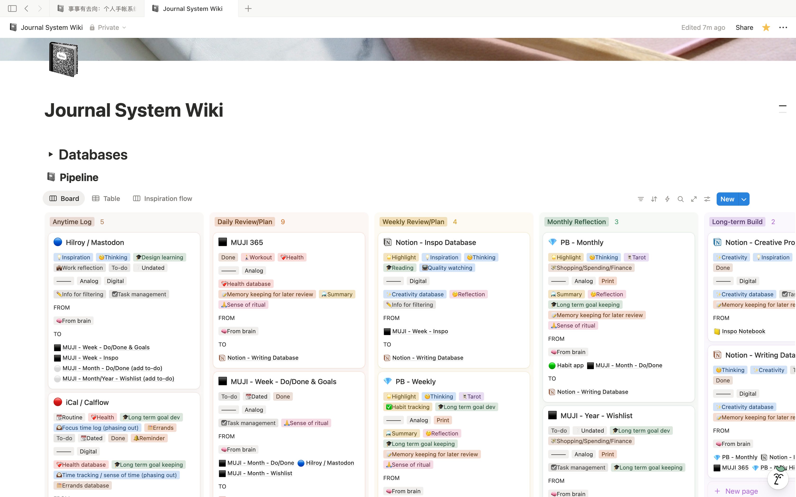 这个部分主要使用Journal配合其他本子和app对记录下来的信息以日—周—月—年的维度进行层层提炼。
